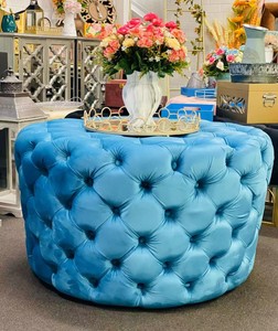 Blue velvet all over deep tufted ottoman bench.